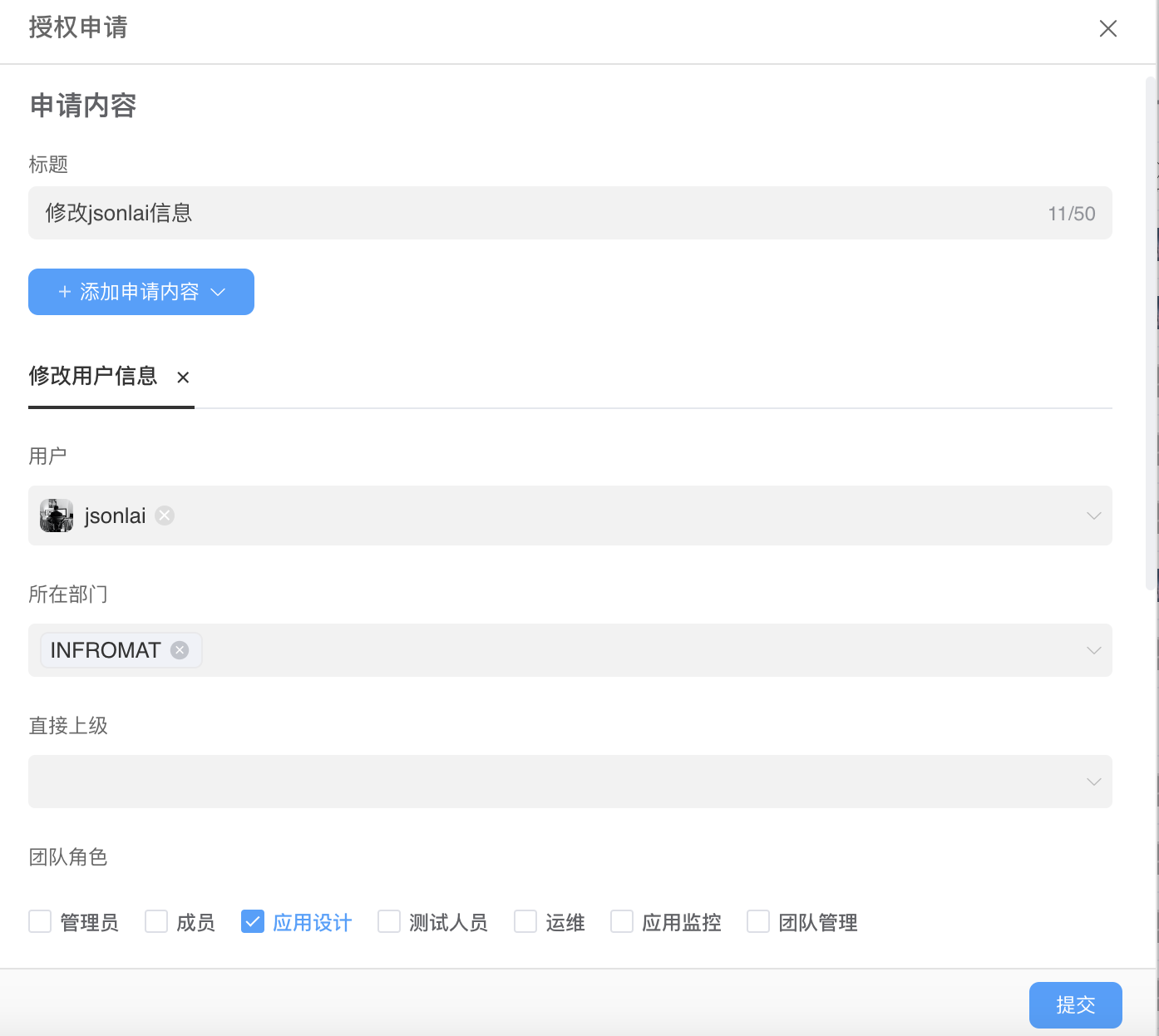 - 系统管理员 提交用户授权申请(包括新增用户,移除用户,修改用户权限等操作)。
