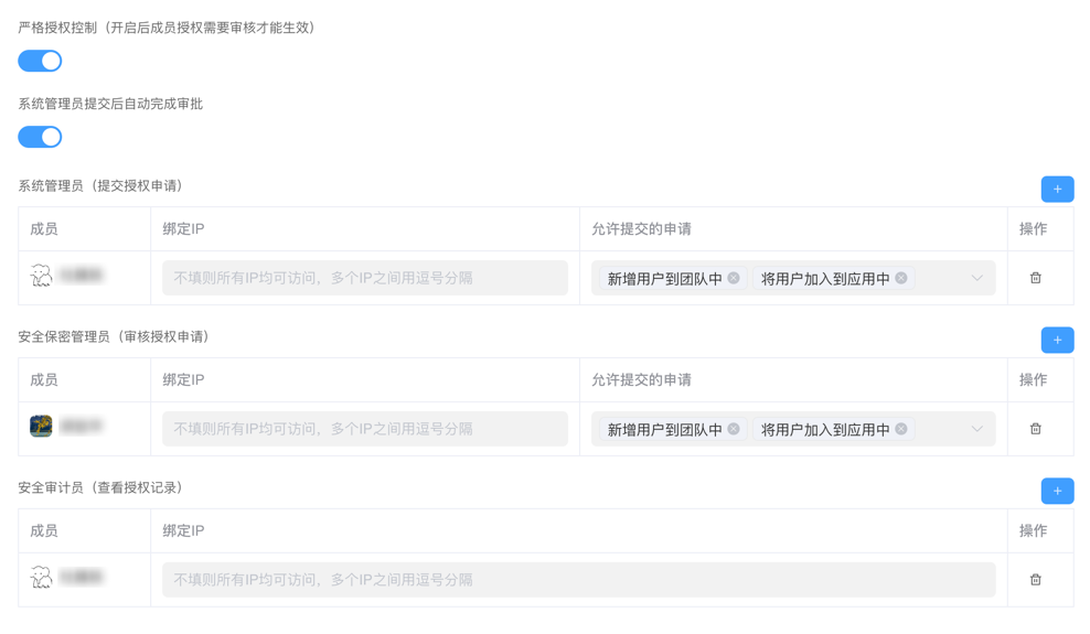 该配置开启后,系统管理员提交的授权申请会自动完成审批,无需安全保密管理员的审核。